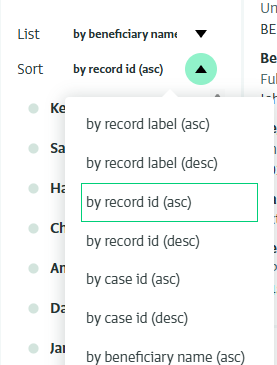 In the record list, you can easily switch between records. You can search the list for a record in your form, choose how to label records, and choose how to sort records, for rapid selection.