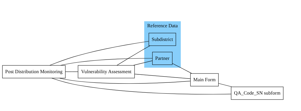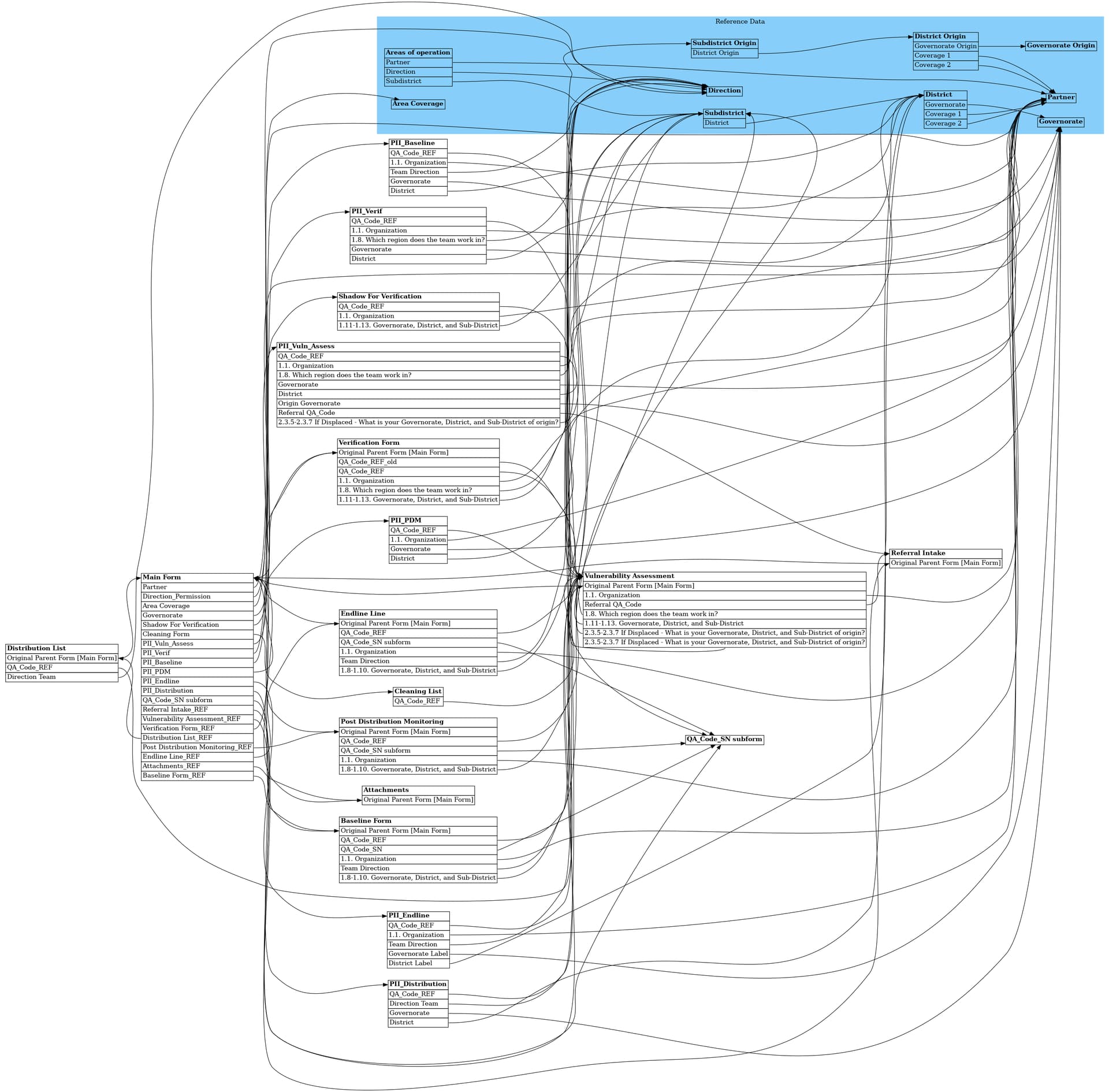I agree that having a data model view with too many tables and relationships can cause confusion. From a user’s standpoint, I think of having the views focused on a single form. If I have three forms overall in my database I can “filter” the data model. I, for example, would have the second screenshot but only focused on the post distribution monitoring “path” or relationships and I can choose which tables I would like focus on.