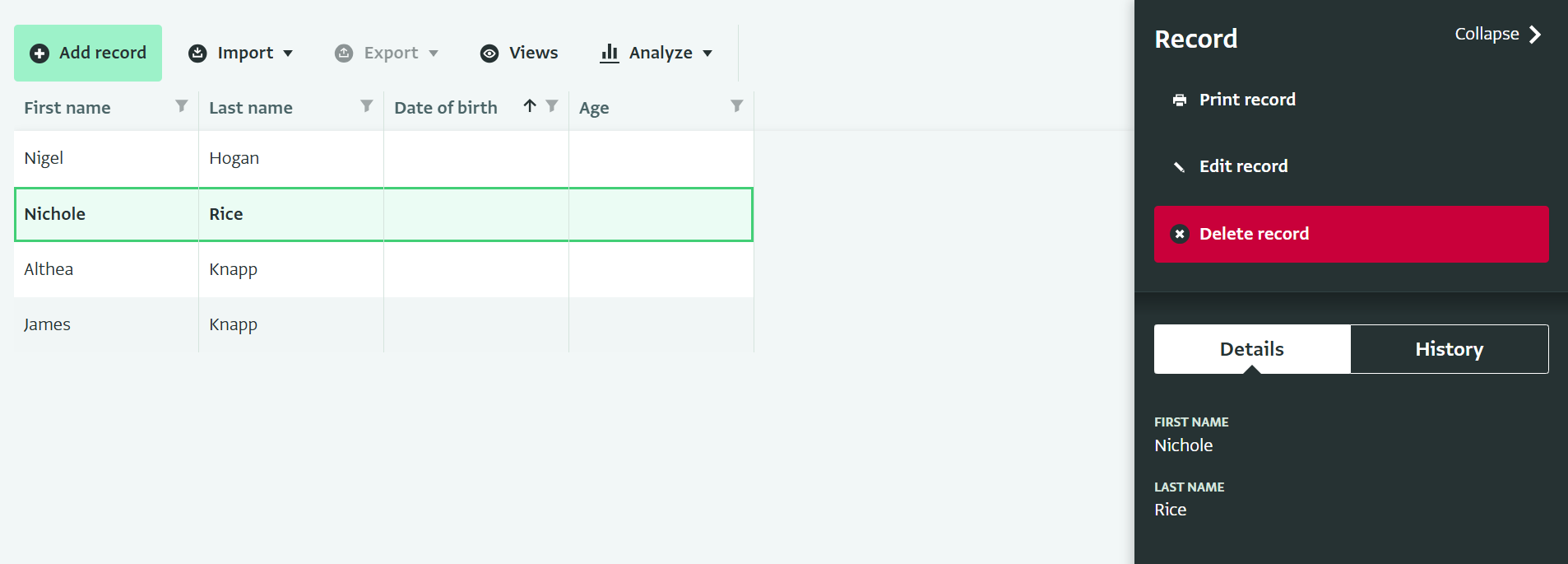 The first thing I would like to know is whether this feature has already been implemented or not. The truth is that we work with personal data (such as first and last names) in the ‘parent forms’ (it wouldn’t make much sense to have confidential data in a subform, because there is not a 1 → n -1 relationship), for example, as you use in the EMR template. The problem is that, although the field can be hidden in the table view or a predefined view can be created where this field is not present, if a user customises the view, they can reselect and therefore make that field visible again. Do you think it is possible to mark a field as ‘sensitive’ and, in the role configuration, add the option that certain people cannot see sensitive fields?