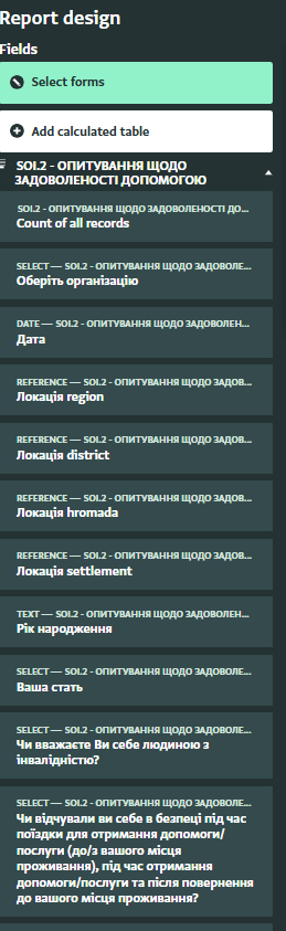 Although the table view shows field labels translated from the original language to another (for example, from Ukrainian to English), when we want to create a report, the fields do not appear translated.