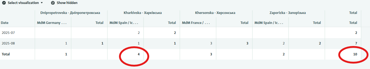If we hide the columns or rows of the months that do not interest us in the pivot table, the totals do not change (as in Excel, after all).