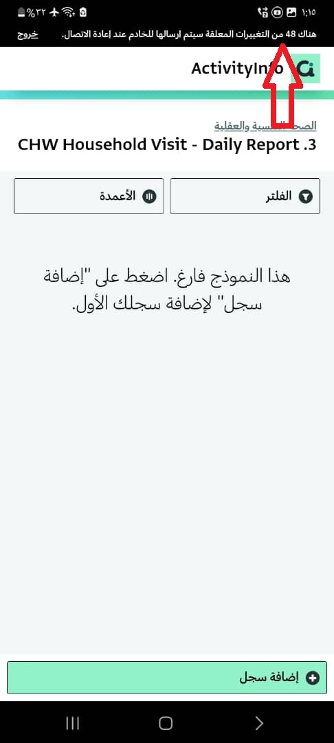 The teams are using Activity Info on Mobile Phones in the field where there is no Internet Access, and they are filling out the reports in Offline mode, so when they have internet access, the reports are stored in the mobile phone and not synchronized, Sorry for attaching the picture in the Arabic, But in general, this is the main issue, If anyone faced the same issue and solved it, Please share the method with us, Thanks a lot.