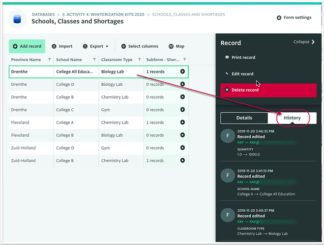 You can read more here in our documentation: View the history of a Record added to a Form - ActivityInfo: information management software for M&E, reporting and case management
